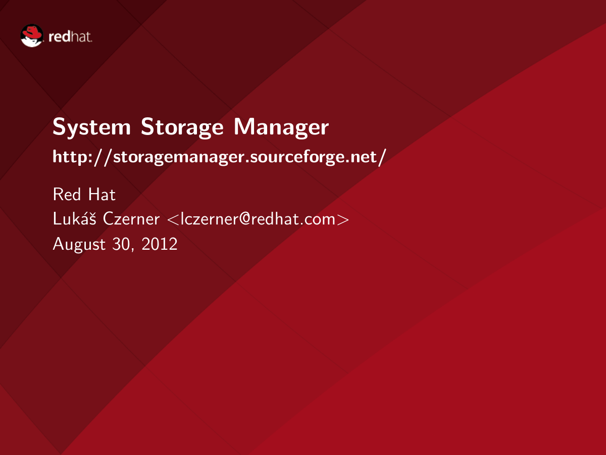 System Storage Manager provides a unified command-line interface for managing multiple Linux storage technologies including LVM, btrfs, encrypted volumes, and mdraid.